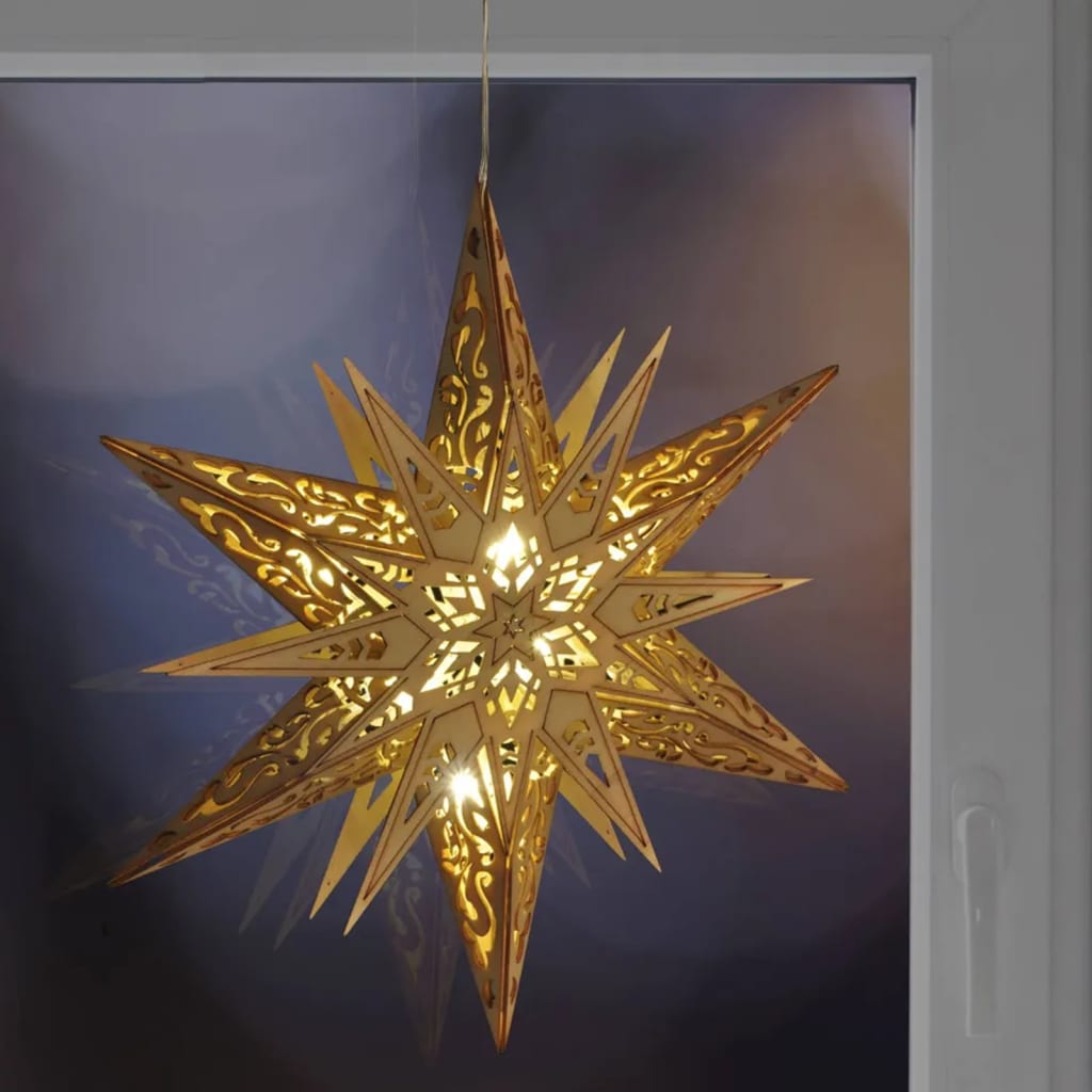Osvijetlite noći ovom svjetiljkom HI u obliku drvene izrezbarene zvijezde! Ova zvijezda savršen je dodatak vašem blagdanskom uređenju, trijemu, pa čak i za vješanje na drveće.