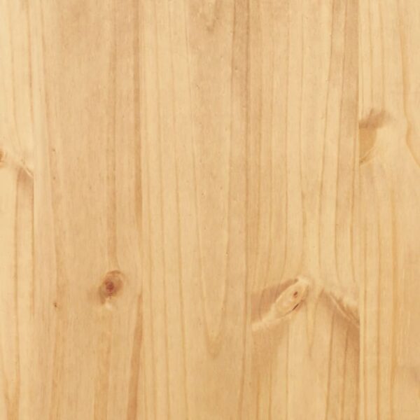 Ovaj visokokvalitetni drveni kredenc komad je namještaja u meksičkom stilu “Corona”. Borovina premazana voskom s crnim metalnim detaljima odiše rustičnim meksičkim šarmom zbog kojeg će komoda biti odličan dodatak vašem dnevnom boravku, blagovaonici ili hodniku. Ova visoka komoda može se upotrebljavati i kao vitrina ili police za knjige. Izrađen od masivne borovine, kredenc je snažan i robustan. Tri otvorene police iznad idealne su za spremanje knjiga ili staklenog posuđa i izlaganje ukrasnih predmeta. Ormarić ispod ima dvije police i pruža dovoljno prostora za pohranu. Sastavljanje je vrlo jednostavno.
