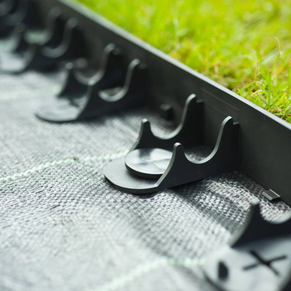Vrtni rubnjak sa sidrenim klinovima marke Nature dizajniran je za odvajanje travnjaka, šljunka ili kaldrme dok istovremeno sprječava širenje travnjaka.