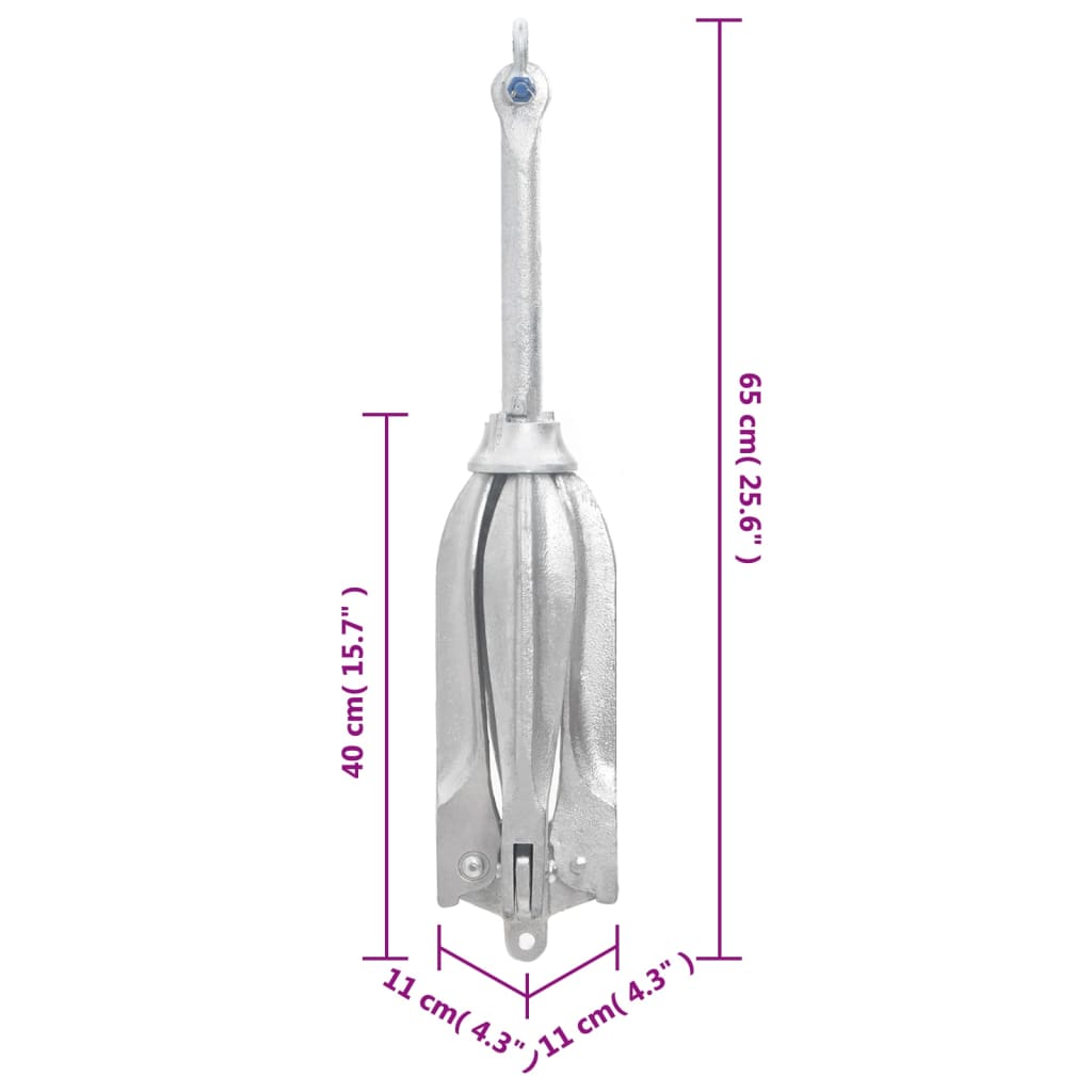 Sklopivo sidro s užetom srebrno 10 kg od kovanog željeza